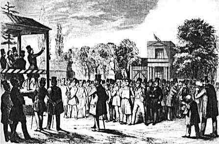 | Versammlung des »Politischen Clubs« in den Zelten am 20.April 1848 | ||||