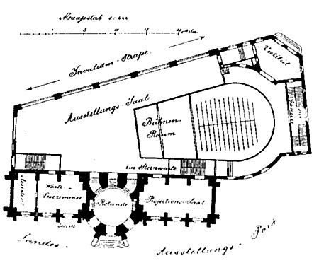 Der Gedanke der wissenschaftlichen Volksbildung, der seine Wurzeln in den öffentlichen Kosmos-Vorlesungen Alexander von Humboldts in den Jahren 1827/28 hatte, konnte jetzt in viel umfassenderer Weise in die Tat umgesetzt werden. Dies stand natürlich auch im Zusammenhang mit der immer weiter fortschreitenden Industrialisierung, die eine immer höhere Qualifizierung der Beschäftigten nötig machte. Nur so war auch der immense Andrang bei den Veranstaltungen zu verstehen. Im sechsten Jahr seines Bestehens zählte das Institut bereits 178143 Besucher. Die Zahl der fachwissenschaftlichen Vorträge hatte sich nahezu verdoppelt. Das Gebäude wurde diesem Besucherandrang nicht mehr gerecht. Zudem stellte sich mehr und mehr als nachteilig heraus, daß der Weg nach Moabit bei den damaligen Verkehrsverhältnissen vor allem im Winter doch recht beschwerlich war. |
