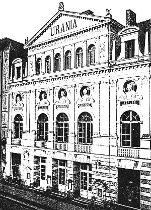 Die Fassade des imposanten Hauses war mit den Porträts von Kopernikus, Siemens, Humboldt, Helmholtz und Keppler geschmückt. Bedeutend größere und schönere Säle standen nun auch für Lehrzwecke zur Verfügung, wie der große Theatersaal mit 700 Plätzen und ein 200 Personen aufnehmender Hörsaal. Dieser wurde im Winterhalbjahr für Vortragsreihen über Physik, Astronomie, Geologie, Verkehrsgeographie, Technik sowie auch für wissenschaftliche Einzelvorträge genutzt. An interessierte Berliner verschickte die URANIA Prospekte, um über Vorträge zu informieren. Die Referenten legten großen Wert auf Praxisbezogenheit. So hielt Dr. Naß am 2. Dezember 1898, einem Freitag, im großen Hörsaal einen Vortrag über das Bier. Am Samstag besuchten Referent und Zuhörer die Schultheiß-Brauerei und am Sonntag die Weißbier-Brauerei von Gebhardt. 1897/98 zählte die URANIA in ihrer neuen Einrichtung und in der ihr noch gehörenden Volkssternwarte in der Invalidenstraße insgesamt 215344 Besucher. Auch in der Taubenstraße kamen bedeutende Gelehrte und Erfinder zu Wort, Namen wie Hertz, Auerbach, Ponicaré und Einstein waren auf den Vortragslisten zu finden, die Polarforscher Amundsen und Nansen berichteten über ihre Reisen. |