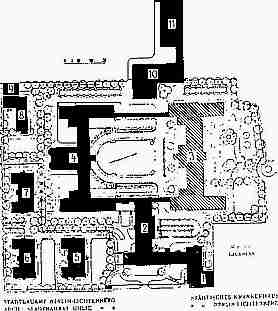 unter weitgehender Erhaltung des Stadtparks erfolgen sollte. Die Krankenhausbaukommission schloß sich dem Vorschlag