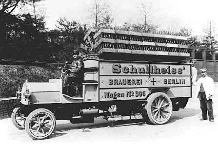 Eine wesentliche Erweiterung erfolgte 1898 mit dem Erwerb der Borussia- Brauerei in Niederschöneweide, die als Abteilung IV eigeordnet wurde. Ein denkwürdiges Jahr in der Schultheiss- Geschichte war 1904: Am 20. August wurde erstmals die Traumgrenze von einer Million Hektoliter Jahresproduktion überschritten. Weitere Expansionsmeilensteine waren 1910 der Erwerb der Brauerei »Pfeifferhof« in Breslau, nunmehr als Abteilung V wichtiger Eckpfeiler für den schlesischen Markt, und 1914 die Fusion mit der »Berliner Unions- Brauerei« in der Hasenheide. Zu dieser Brauerei von nun an Abteilung VI gehörten die »Jagdschlößchen- Brauerei« in Eberswalde sowie ein Zweigbetrieb in Schneidemühl. Die zwischen 1917 und 1919 erworbenen Betriebe »Spandauer Bergbrauerei« mit den beiden volkstümlichen Schankwirtschaften »Bock« und »Zibbe« sowie »Pfefferberg« wurden nach kurzer Zeit stillgelegt. Die bedeutendste Betriebserweiterung war am 12. Juli 1920 der Zusammenschluß mit der Patzenhofer- Brauerei AG. In den | ||