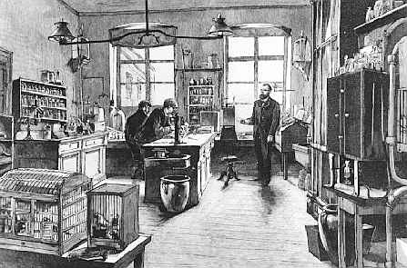 Mit fähigen Mitarbeitern konnte er in gewohnter systematischer Arbeit ein stäbchenförmiges Bakterium, er nannte es Bazillus, als Erreger der Tuberkulose identifizieren. Lange Versuchsreihen in Tag- und Nachtarbeit waren dazu notwendig gewesen. Durch spezielle Färbemethoden, bei denen ihm Paul Ehrlich half, konnte er das Tuberkelbakterium im Mikroskop sichtbar machen, und es gelang ihm, es in Reinkultur zu züchten. In Tierversuchen am Meerschweinchen wies er nach, daß nur dieses Bakterium der Erreger der Tuberkulose bei Mensch und Tier sein konnte. Am 24. März 1882 gab er diese Entdeckung in einem Vortrag vor der Physiologischen Gesellschaft in Berlin bekannt. Den epochemachenden Vortrag hielt er im Hygiene- Institut der heutigen Humboldt- Universität in der Dorotheenstraße. Nachdem nun der |