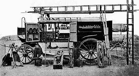 Auf dieser ersten wirklich bedeutenden Fachausstellung für das Feuerlöschwesen wurde auch der erste automobile Löschzug der Welt vorgestellt. Er kam von der Berufsfeuerwehr Hannover mit ihrem Leiter Branddirektor Reichel. (Reichel wurde später in Berlin der Nachfolger von Branddirektor Giersberg.) Automobile | ||
