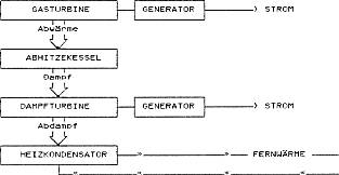 Durch die Kraft-Wärme- Kopplung läßt sich dagegen ein Wirkungsgrad von fünfundsiebzig bis neunzig Prozent erreichen.