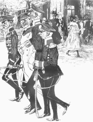 Mein Urgroßvater gab ihr Form und Leben, und neuer Lorbeer krönte die neuerstandene Armee und ihre jungen Fahnen. Ihre eigentliche Bedeutung jedoch gewann die allgemeine Dienstpflicht erst durch unseren großen, dahingegangenen Kaiser. In stiller Arbeit entwarf Er Seine Reorganisation unserer Armee, trotz des Widerstandes, den der Unverstand Ihm setzte. Die siegreichen Feldzüge krönten jedoch Sein Werk in nie geahnter Weise. Sein Geist erfüllte die Reihen Seines Heeres ebenso wie Sein Gottvertrauen dasselbe zu unerhörten Siegen hinriß. Mit dieser Seiner eigenen Schöpfung führte Er die Deutschen Stämme wieder zusammen und gab uns die langersehnte Deutsche Einheit wieder. Ihm danken wir es, daß Kraft dieser Armee das Deutsche Reich achtunggebietend seine ihm bestimmte Stellung im Rath der Völker wieder einnimmt. An Ihnen ist es nun, meine Herren, auch im neuen Jahrhundert die alten Eigenschaften zu bewähren und zu bethätigen, durch welche unsere Vorfahren die Armee groß gemacht haben: Einfachheit und Anspruchlosigkeit im täglichen Leben, unbedingte Hingabe an den Königlichen Dienst, volles Einsetzen aller Kräfte des Leibes und der Seele, in rastloser Arbeit an der Ausbildung und Fortentwicklung unserer Truppen. Und wie mein Großvater für Sein Landheer, so werde auch Ich für Meine Marine unbeirrt in gleicher Weise das Werk der Reorganisation fort- und durchführen, damit auch sie gleichberechtigt an der Seite Meiner Streitkräfte zu Lande stehen möge und durch sie das Deutsche Reich auch im Auslande in der Lage sei, den noch nicht erreichten Platz zu erringen. Mit beiden vereint hoffe Ich in der Lage zu sein, mit festem Vertrauen auf Gottes Führung den Spruch Friedrich Wilhelms I. wahr zu machen: Wenn man in der Welt etwas will decidiren, will es die Feder nicht machen, wenn sie nicht von der Force des Schwertes souteniret wird.