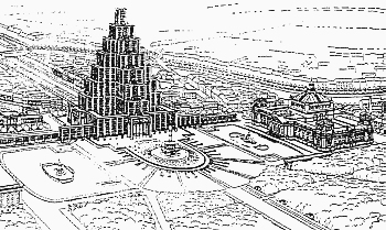 | Entwurf für ein »Reichshaus« am Königsplatz, später Platz der Republik (Zeichnung von O. Kohtz, 1920) |
