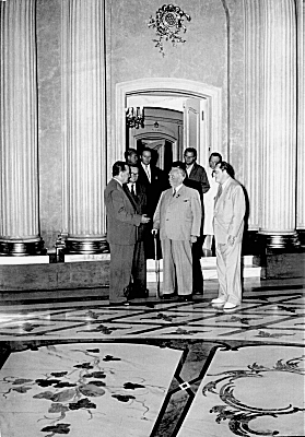 Staatspräsident Wilhelm Pieck (Mitte) besichtigt die wiederaufgebaute Staatsoper Unter den Linden | |