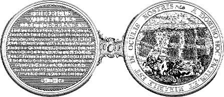 Der Tod des Stallmeisters Froben an der Seite des Großen Kurfürsten wird auf mehreren Medaillen dargestellt - hier ein Kupferstich aus Oelrichs Werk über die Gedenkmünzen und -medaillen Friedrich Wihelms von Brandenburg aus dem Jahr 1778 | ||
