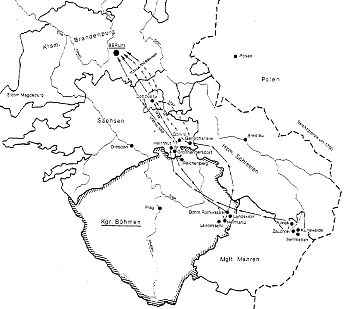 Deshalb sahen sich die Habsburger genötigt, die Emigration zu verbieten und unter Strafe zu stellen. Gleichzeitig verschärften sie den Terror gegen Nichtkatholiken. Als 1726 das Kaiserhaus nichtkatholische Glaubensbekenntnisse zu Staatsverbrechen erklärte, kam es, wie schon vordem, erneut zu Massenfluchten.6) Die Bewohner ganzer Dörfer verließen bei Nacht und Nebel, mit wenigen Habseligkeiten ausgestattet, ihre Heimat. Jene Exulanten, die später in Berlin bzw. in der Mark Brandenburg sesshaft wurden, stammten vor allem aus dem Adlergebirge. Sie ließen sich zunächst in grenznahen sächsischen Dörfern der Lausitz nieder. Doch auch hier waren sie nicht sicher, denn der sächsische Hof widersetzte sich keineswegs grundsätzlich Forderungen der Habsburger, die, gestützt auf die schon genannte Bestimmung des Westfälischen Friedensvertrages, die Ausweisung und die Rückführung ihrer Untertanen verlangten.7)