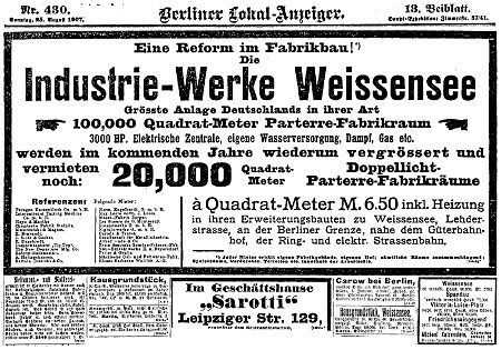 Anzeige im Berliner Lokal-Anzeiger vom Sonntag, dem 25. August 1907 | ||