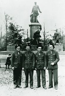Französische Soldaten vor dem Bismarck- Denkmal, um 1946 |