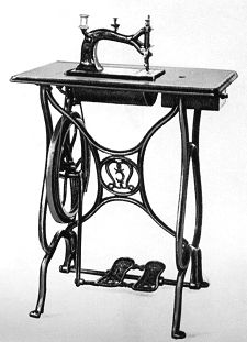 Diese weiterentwickelte Loewe- Nähmaschine ist statt der Handkurbel bereits mit Tretantrieb ausgerüstet