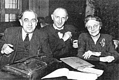 Die Politiker Ernst Reuter, Otto Suhr und Louise Schroeder (v. l. n. r) Auch für Reuter war klar, dass nach Kriegsende in Deutschland einiges geschehen musste, um die Zeit des Nazismus zu überwinden. In einem Brief an einen Mitemigranten schrieb er schon im Jahre 1943 über die »politischen Pflichten« der Emigranten Deutschland gegenüber: »Nur eine klare, einwandfreie, radikale und die Welt absolut überzeugende Ausrottung des nationalsozialistischen Systems und seiner Ideologie, nur ein rücksichtsloses Durchgreifen gegen alle die Kräfte, die dieses Regime gestützt haben, kann in langsamer und systematischer Arbeit allmählich den politischen Kredit Deutschlands wiederherstellen.«5) |