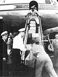 Auf Initiative von Eleanor Dulles treffen Lebensmittelspenden für »die Zone« in West-Berlin ein »Wir vergaben große Summen für die Errichtung neuer Gebäude, nicht nur weil sie nötig waren, sondern weil sie unser langfristiges und anhaltendes Interesse versinnbildlichten.«5) In diesem Sinne waren weitere Unternehmungen mit ihrem Namen verbunden, so auch die finanzielle Förderung von »RIAS Berlin - Eine freie Stimme der freien Welt«. |
