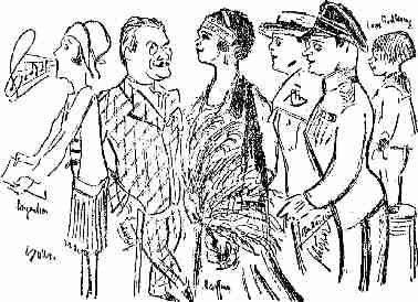 | Zeichnung aus einer Rezension der Uraufführung von »Kammermusik« 1930 | ||||||||