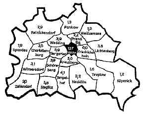Insgesamt waren über 28,5 Quadratkilometer des Stadtgebietes zerstört worden. Eine Zone der Vernichtung reichte von Lichtenberg im Osten über Stadtmitte bis Charlottenburg und Wilmersdorf im Westen. In den Innenbezirken Mitte, Tiergarten und Kreuzberg schien alles Leben für lange Zeit unter Schuttbergen begraben. Angrenzende Verwaltungsbezirke, besonders mit Industriestandorten, hatten ebenfalls schwer gelitten. Demgegenüber wiesen die ländlichen Randbezirke geringe Zerstörungen auf. Das Ausmaß der Kriegsschäden an Gebäuden schockierte selbst die Fachleute, als sie im Sommer 1945 eine Bestandsaufnahme vornahmen und erste Überlegungen über Enttrümmerung und Wiederaufbau anstellten. Der Experte Dr.-Ing. Runge machte in der »Berliner Zeitung« vom 3. Juli 1945 folgende Rechnung auf: Man kann annehmen, daß mit jeder zerstörten Wohnung 40 Kubikmeter Schutt anfallen. Rechnet man in Groß-Berlin nur mit 800 000 zerstörten Wohnungen (wobei alle Industrie- und Geschäftshäuser sowie alle Verwaltungs- und öffentliche Gebäude unbeachtet bleiben), dann liegen im Stadtgebiet mindestens 3035 Millionen Kubikmeter Schutt ... Der Abtransport würde mindestens 10 Millionen Lkw-Fuhren von je 5 Tonnen Ladefähigkeit oder mindestens 3 Millionen Eisenbahnwaggons von je 10 Tonnen Fassungsvermögen oder 60 000 | ||