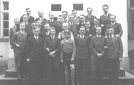 Dietrich Bonhoeffer (letzte Reihe 2. v. links) und Albrecht Schönherr (letzte Reihe rechts) 1935 beim Predigerseminar in Zingst/ Finkenwalde | |||
