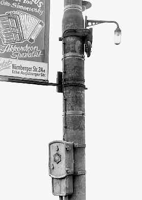 öffentlichen Gebäuden und Beleuchtungsmasten von der Firma Siemens & Halske angebrachten 30 Straßen- Polizeimelder des Polizeiamtes Mitte wurden heute in Betrieb