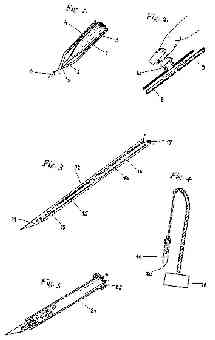Es kann ganz wie bei Füllfederhaltern der schreibende Leiter an seinem Ende die Form einer auswechselbaren Schreibfeder erhalten und der Tintenraum des Füllfederhalters als Behälter für die zu zersetzende Lösung dienen, während die unter der Feder liegende Zunge den anderen Leiter darstellt. In Fig. 3 ist die Schreibfeder 11 an den Leiter 12 angeschlossen, der seine Energie aus dem Trockenelement oder Akkumulator 18 erhält, ebenso wie der Leiter 14 mit der Zunge 15. Die Lösung befindet sich in einem Behältnis 16. Ein kleiner Ausschalter 17 gestattet, das Schreibzeug an- und abzustellen. Das Element 13 ist durch Abschrauben des oberen Teiles leicht auswechselbar. Fig. 4 zeigt eine Sonderausführung eines Füllschreibstiftes mit aufgespeichertem Farbstoff. Fig. 5 zeigt eine Ausführung mit aufgespeichertem Farbstoff für Füllfederhalter. | ||