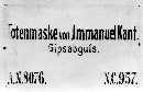 befestigt war, mit der Aufschrift »Totenmaske von Immanuel Kant. Gipsabguß« und den auch auf der Kopfmaske vermerkten Inventarnummern »A. N. 8076.« (A. N. = Alte Nummer?) und »N. C. 957.« (N. C. = Neuer Catalog) vorhanden.