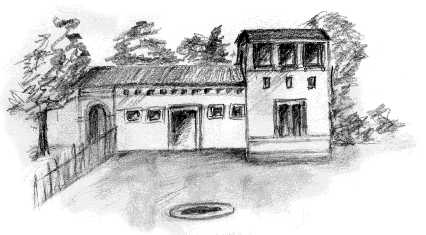 Menageriebauten entstanden 1834, eine Biberburg und ein Büffelstall.