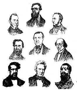 Abgeordnete der Zweiten Kammer: oben: Ziegler, Berends, Jung mitte: Simon, Rodbertus, Jacoby unten: Phillips, Waldeck, Reuter | ||||
