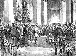 Als 1894 Kaiser Wilhelm II. »im Namen der Fürsten und Freien Städte des Reiches und in Gemeinschaft mit den verfassungsmäßigen Vertretern des deutschen Volkes« den Schlußstein legte und dabei an seinen | ||||