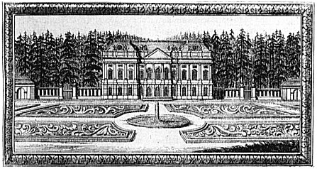 Früheste Ansicht vom Schloß Lietzenburg nach dem Nering-Entwurf, Stich von 1696 | |||