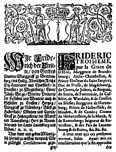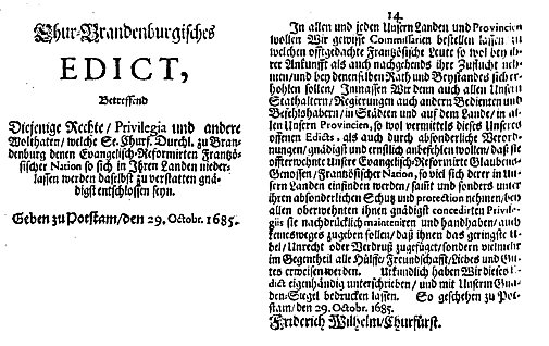 Titelseite des Potsdamer Edikts | |||