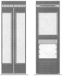 Die rückwärtigen Hinweisvitrinen haben Standardplakatformat.