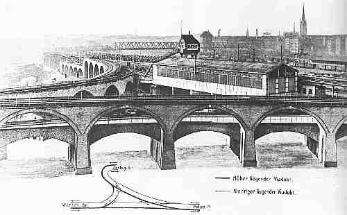 errichteten Viadukten. Zu den Hochbahnhöfen gehört auch der Bahnhof Gleisdreieck. Er wurde als Kreuzungsbauwerk auf verschiedenen Ebenen des Hochbahnnetzes errichtet. Zwischen diesen sich kreuzenden Linien wurde eine direkte Gleisverbindung geschaffen, so daß ein Gleisdreieck entstand, das dieser Station den Namen gab.
