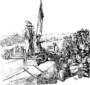 | Theodor Hosemann, Agitator bei den Rehbergen; Lithographie nach einer Zeichnung vom April 1848 | |||||