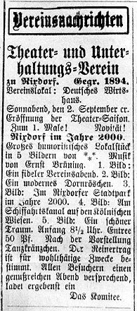 Ankündigung des Theaterstücks im »Rixdorfer Tageblatt« | ||